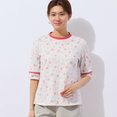 夏の一枚着としてコーディネートのポイントになってくれる柄Tシャツです。