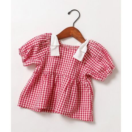 apres les cours(アプレレクール)のシャツ・ブラウス「WEB限定 肩リボンギンガムチュニック」は、ナチュラルなスタイルにさりげなくデザインをプラスしたおしゃれアイテム*
