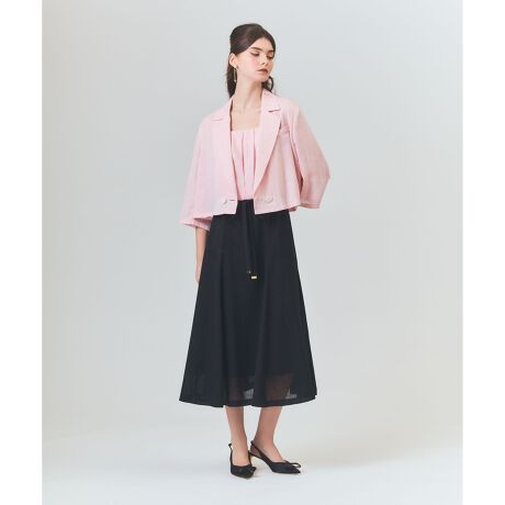 リネンタッチのトリアセ素材でお作りした、夏気分高まるジャケット。ざっくりとしたナチュラルな表情とシアー感が非常に綺麗で、清涼感がありながらも特有の綺麗めな雰囲気を併せ持った一枚です。力の抜けた着こなしを叶えるゆったりとしたシルエットにクロップド丈の好バランスが素敵で、コーディネートをワンランク上の着こなしに。袖はロールアップでき、シャツ感覚で着て頂くことも可能です。Tシャツなどでデイリーにお楽しみいただくのはもちろんの事、お揃いのハーフパンツやブラウスと合わせることで手軽におしゃれなセットアップスタイルもお楽しみいただけます。メイドインジャパンならではの美しい生地や縫製にもぜひご注目いただきたいアイテムです。