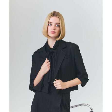 リネンタッチのトリアセ素材でお作りした、夏気分高まるジャケット。ざっくりとしたナチュラルな表情とシアー感が非常に綺麗で、清涼感がありながらも特有の綺麗めな雰囲気を併せ持った一枚です。力の抜けた着こなしを叶えるゆったりとしたシルエットにクロップド丈の好バランスが素敵で、コーディネートをワンランク上の着こなしに。袖はロールアップでき、シャツ感覚で着て頂くことも可能です。Tシャツなどでデイリーにお楽しみいただくのはもちろんの事、お揃いのハーフパンツやブラウスと合わせることで手軽におしゃれなセットアップスタイルもお楽しみいただけます。メイドインジャパンならではの美しい生地や縫製にもぜひご注目いただきたいアイテムです。