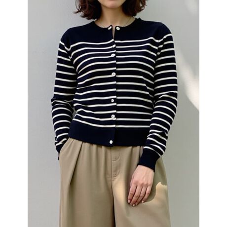 春から秋まで長く合わせやすいアイテム。直線的なシルエットで、綺麗な着こなしを叶えるクルーネックニットカーディガンです。丸みのあるネックラインは柔らかで清楚な印象を与えてくれます。