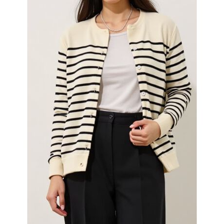 ボーダークルーネックニットカーディガン