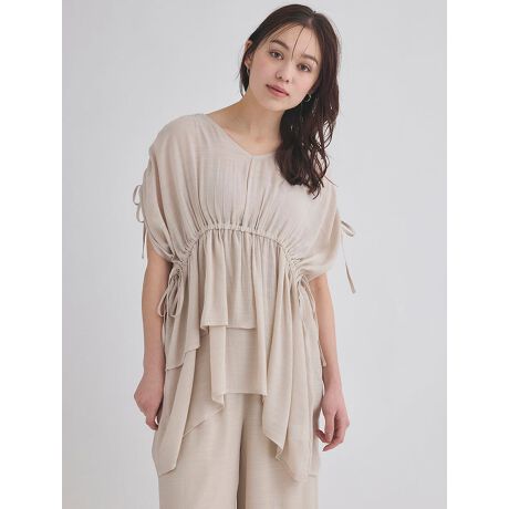 生地の表面に凹凸があり、ナチュラルな素材感が特徴のスラブ生地でできたドロストブラウスです。滑らかで上品な雰囲気があり、胸の下で絞ったドロストにはたっぷりとしたギャザーが生まれ、スタイルアップにもつながるアイテムです。パンツにもスカートにも合わせやすく、さまざまなスタイリングが楽しめるアイテムです。