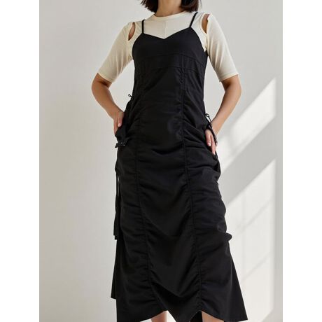 大きめのギャザーがドレッシーな印象のキャミワンピース