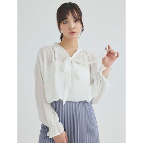 なめらかで落ち感のある素材が上品な印象のブラウス。首元にあしらわれたボウタイリボンが、フェミニンさをプラスしてくれます。きれいめなスタイルにはもちろん、デニムと合わせてカジュアルにも幅広いスタイリングに活躍するアイテムです。