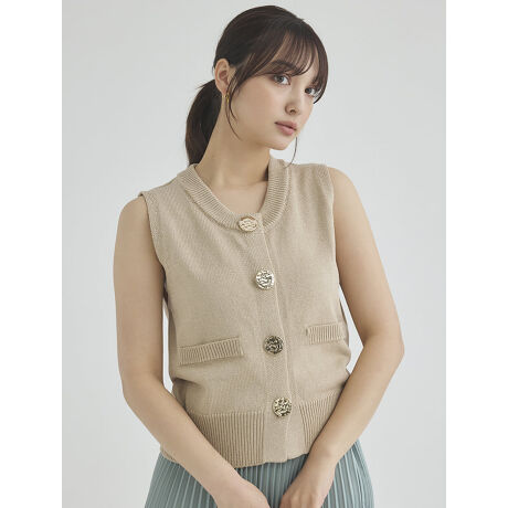 これからの季節に活躍するリネンタッチの軽やかな印象のニットベストです。フェイクポケットや光沢あるボタンがアクセントになり、メリハリのあるデザインに。インナーにはカットソーやブラウスを合わせたり、ワンピースにレイヤードしたり、様々な着こなしが楽しめるアイテムです。