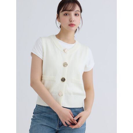 これからの季節に活躍するリネンタッチの軽やかな印象のニットベストです。フェイクポケットや光沢あるボタンがアクセントになり、メリハリのあるデザインに。インナーにはカットソーやブラウスを合わせたり、ワンピースにレイヤードしたり、様々な着こなしが楽しめるアイテムです。