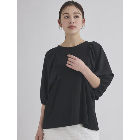 切り替え部分のギャザーが斜めに入り、上半身の細見えが叶うカットソー。ふんわりシルエットでボリューミーな袖なので、二の腕をカバーしてくれるもの嬉しいポイントです。モノトーン、バイカラー、全4色展開。