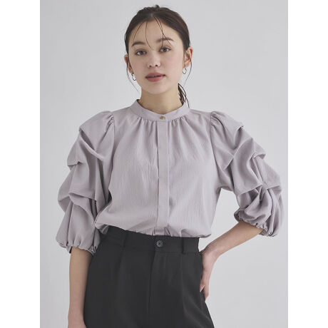 寄せたギャザーがフェミニンなボリュームタックスリーブブラウス