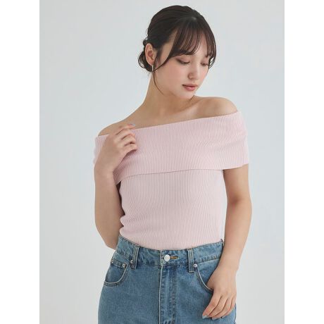 折り返したオフショルデザインとすっきりとしたシルエットが女性らしさ際立つニットです。カジュアルボトムにもフェミニンなスカートにも合わせやすく、コーデに取り入れるだけで華やかさをプラスしてくれるアイテムです。