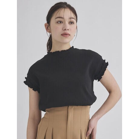 メローな袖口が華奢で可愛らしい印象のフレンチスリーブリブニット
