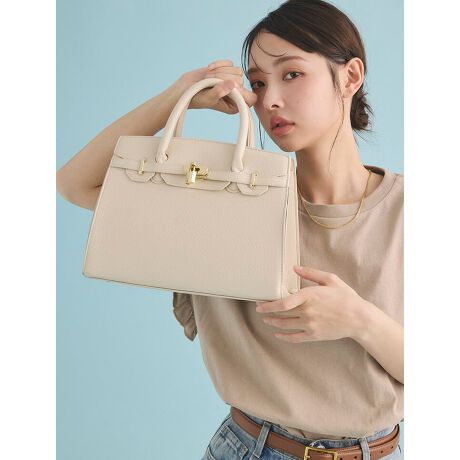 見た目がオシャレなフラップ風のデザインが施されたバッグです。ゴールドのパドロックがエレガントさをプラスしています。付属のショルダーをつけると肩掛けもできて機能的です。カジュアルにもきれいめなスタイルにも合わせやすく、幅広いシーンで活躍するアイテムです。