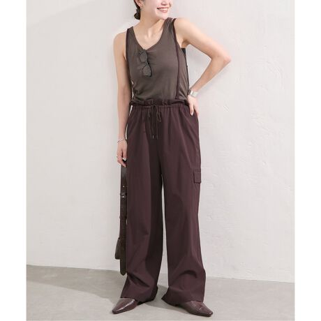 大きめのポケットがポイントになりつつ、細めのサスペンダーベルトとさらっとした表面感で大人カジュアルな印象に仕上がっています。