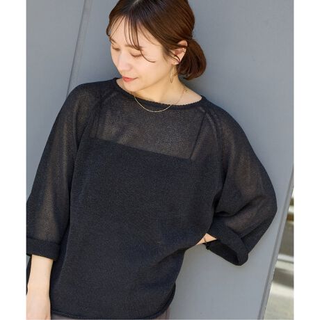 和紙原料のドライタッチのシアー感ある軽いニットで夏でも肌離れよく吸湿速乾性もあります。