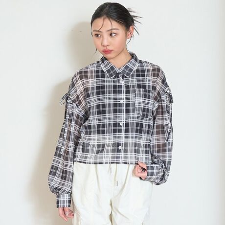 トレンドの感のあるシアー素材を使用したチェックシャツです。