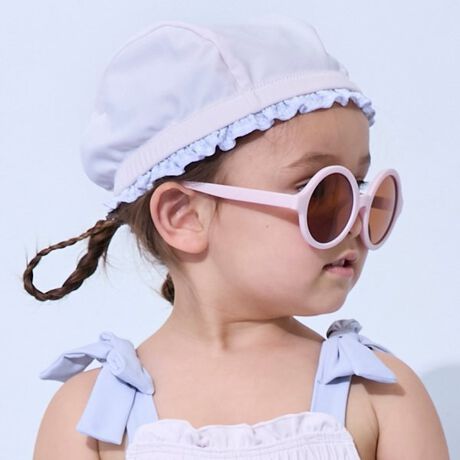 丸みのあるフレームが可愛らしく、カラーレンズがクールな印象を与えます。