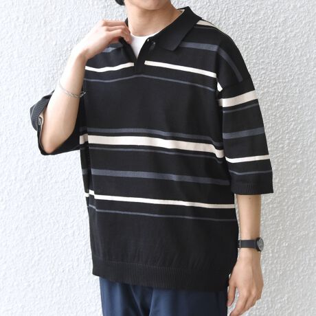 トレンドのニットポロシャツを大人のリラックスシルエットで演出したアイテム。