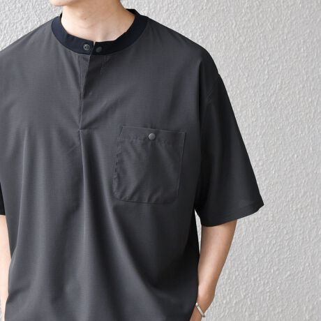 首元のヘンリーネックが特徴のTシャツ