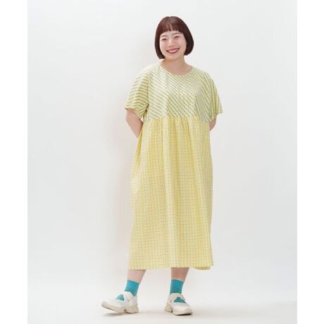 凸凹がかわいいサッカーチェックの生地を表・裏混ぜ込み表情の変化を付けたワンピースです。