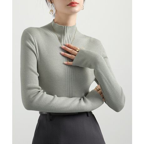 プチハイネックリブニットトップスきれいめ