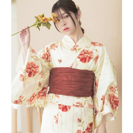 浴衣4点セット 飴色椿 (浴衣 兵児帯 腰紐2本)