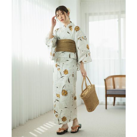 和の風情を感じる浴衣地に描かれた向日葵が涼やかな浴衣。