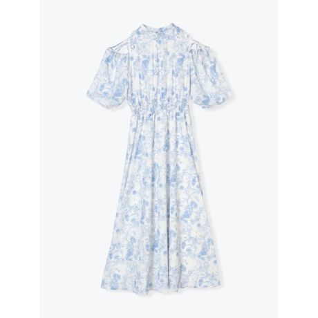 程よい肌見せがレディな上品花柄バルーンスリーブワンピース