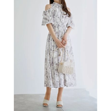 ・繊細な花柄プリントがエレガントなムードを演出するワンピース。