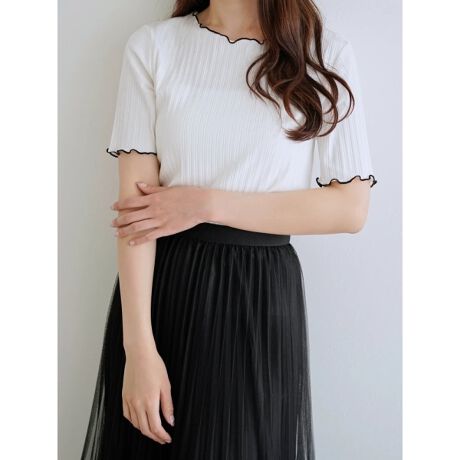 配色フリルが可愛いのでフェミニンボトムスと好相性◎
