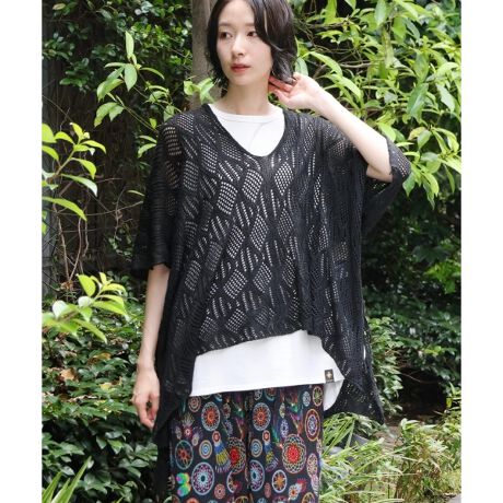 透かし編みニットポンチョ