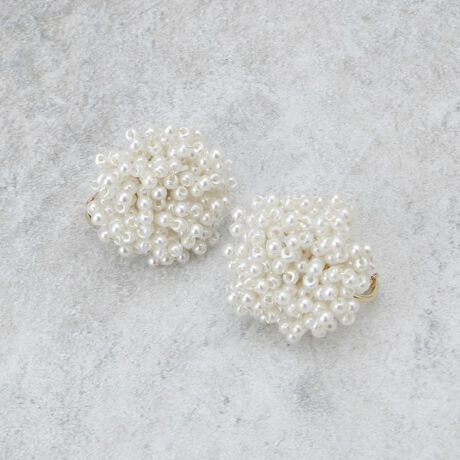 華やかなパール調のイヤリングは、お花が咲いているかのようなディテールが、優雅さと可愛らしさを兼ね備え、フェミニンな印象を引き立てます。