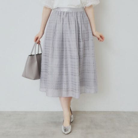 ・透け感のあるシアーチェックが特徴のフレアスカート。