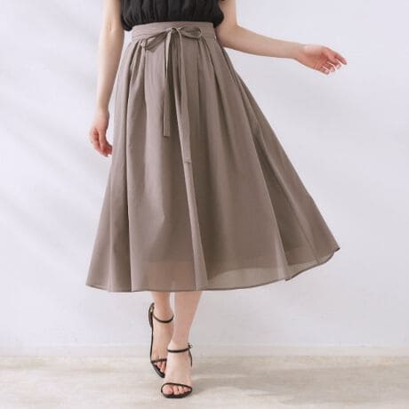 タック&ギャザーで腰回りのボリュームを程良く抑えて、ふんわりシルエットを実現したキレイめスカート
