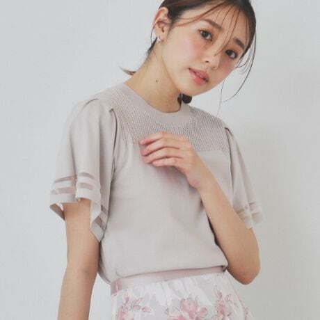 シアーラインが涼し気なフレアスリーブニット