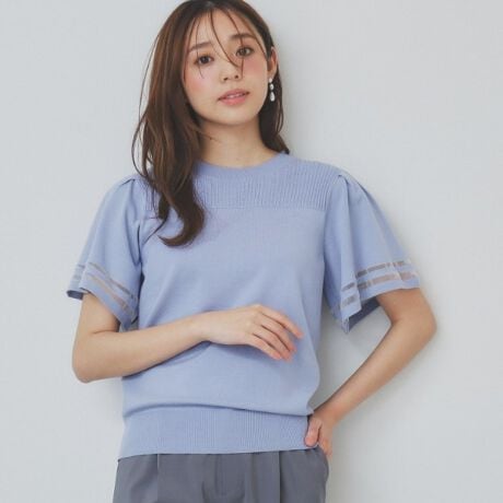 シアーラインが涼し気なフレアスリーブニット