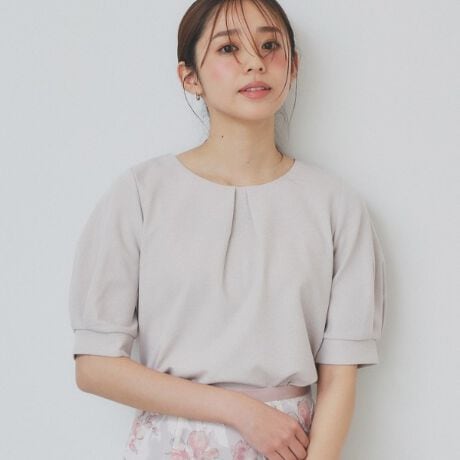 ・優雅なタックスリーブが特徴のデザインで、女性らしさを引き立てるトップス。