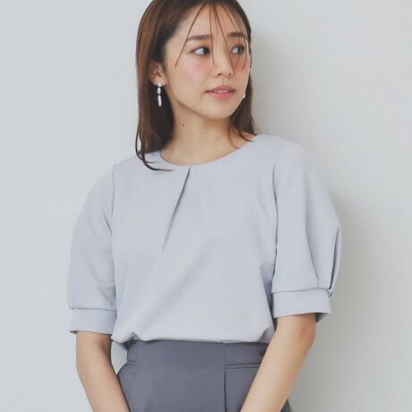 ・優雅なタックスリーブが特徴のデザインで、女性らしさを引き立てるトップス。