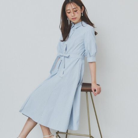 上品でクラシカルなストライプシャツワンピース