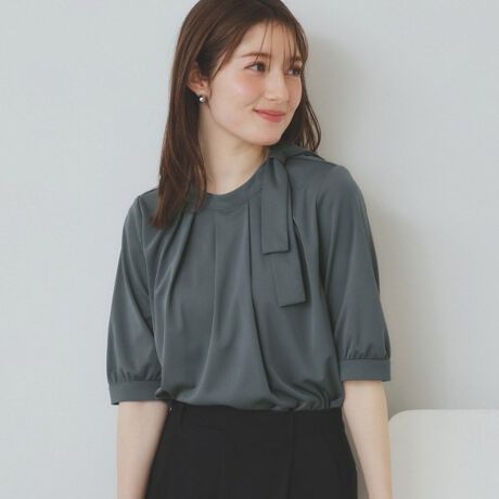 ・コンパクトなシルエットにクラシカルなリボンディテールがポイントのトップス。