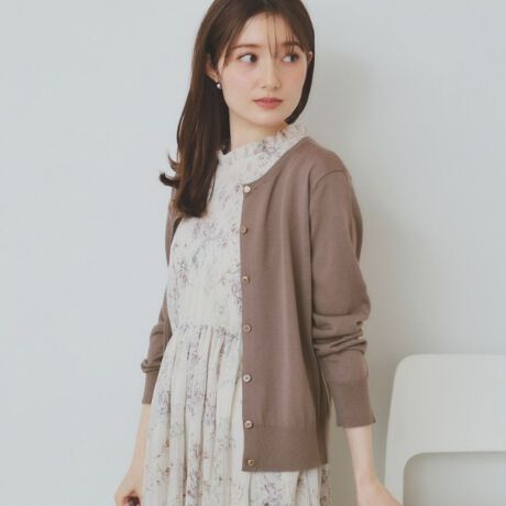 ・着まわしやすいベーシックなコンパクトクルーネックカーディガン。