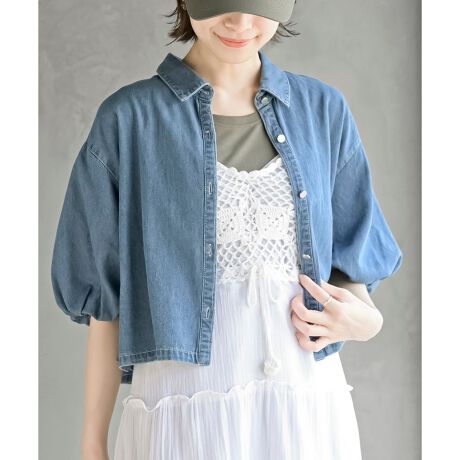 丸みのあるフォルムが女性らしいデニムシャツ。