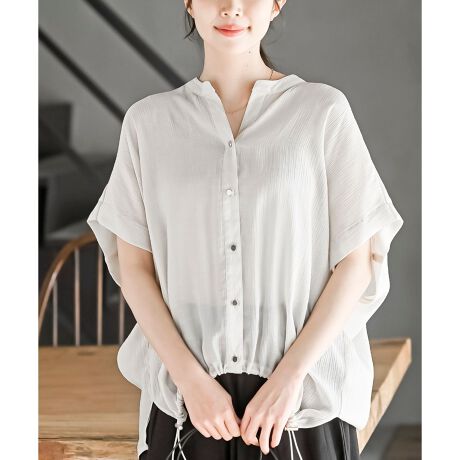 フロント裾に入ったドロストコードでシルエットの変化が楽しめるブラウス。