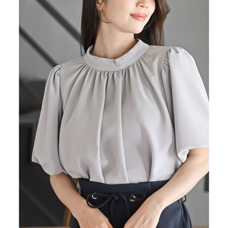 バルーンスリーブスタンドネックブラウス