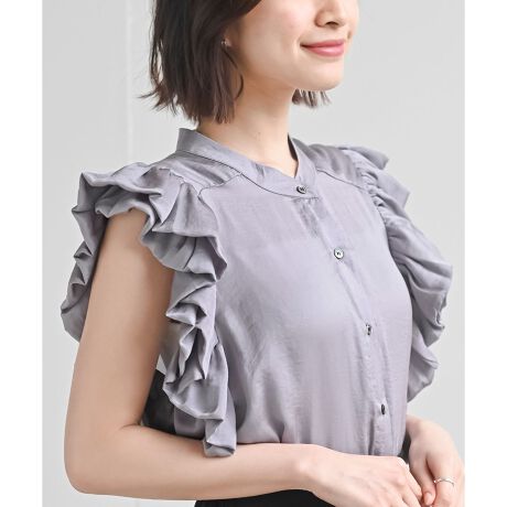 袖口にあしらった2段のフリルがガーリーなムードのブラウス。