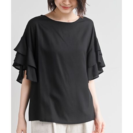 とろみレーヨンの袖フリルブラウス