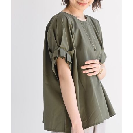 袖口にあしらったタックがふっくら女性らしいスリーブラインに。