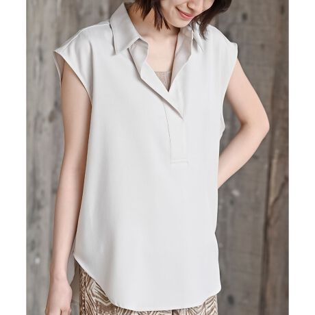 ほんのり光沢のあるツイル素材のきれいめシャツ。