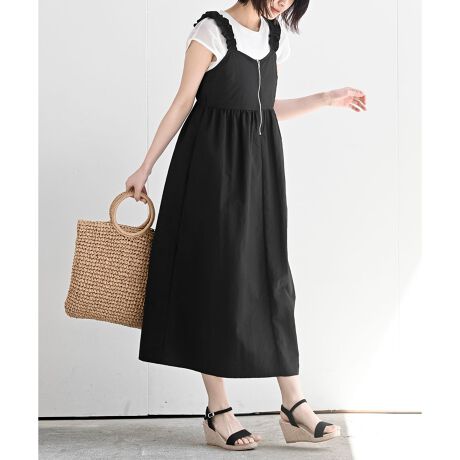 ふわっと軽いナイロン素材のジャンスカワンピとプルオーバーのセットアップ。