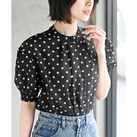 リズミカルなドットが大人かわいいブラウス。