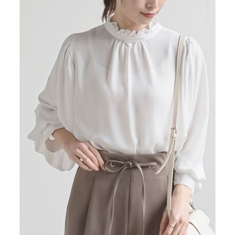 【2WAY】ふんわり袖とフリルネックのフェミニンブラウス